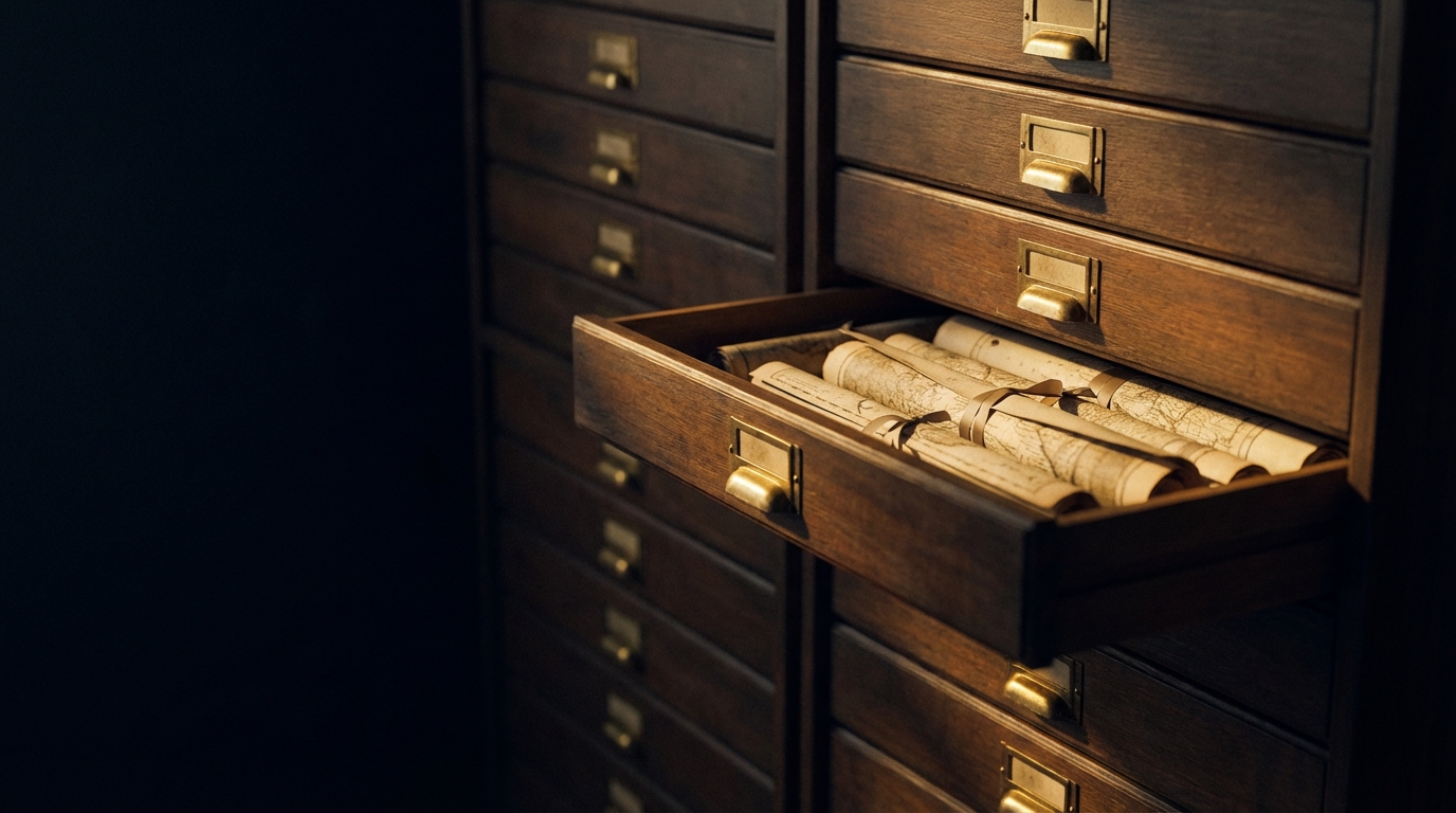 The interactive Explore Map renders all 13,554 heritage sites on a single map using MapLibre GL. The map uses a custom vector tile style with a heritage-appropriate palette — parchment backgrounds, gold major roads, and burgundy highways.